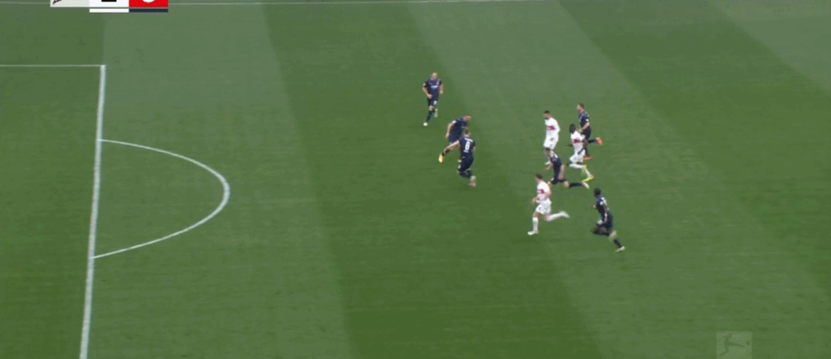 下半场刚刚开场不久,斯图加特第53分钟扩大战果,斯蒂勒收到Deniz Undav直塞球助攻,左脚射门得分!2比0。
