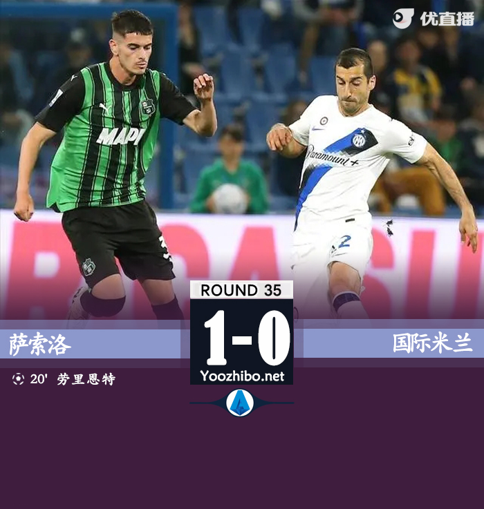 优直播讯:北京时间5月5日2:45,意甲第35轮,国米客战萨索洛。上半场,劳里恩特帮助萨索洛取得领先;劳塔罗进球越位无效。下半场,双方均无建树。最终,国米0-1不敌萨索洛,本赛季遭遇萨索洛双杀。同时联赛28轮不败终结。