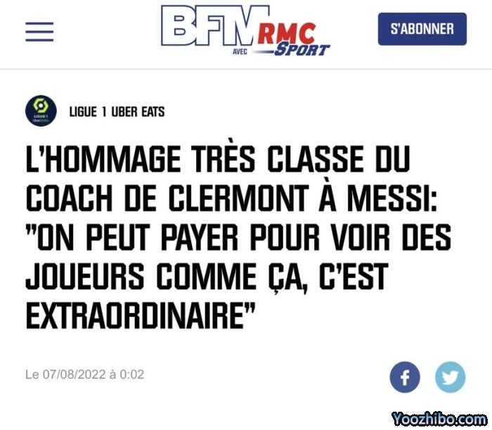 优直播08月07日讯 今天凌晨结束的法甲首轮焦点中,巴黎圣日耳曼以5-0的比分大胜克莱蒙。梅西本场比赛表现出色,为球队贡献了两粒进球和一次助攻,其中包括一记精妙绝伦的倒钩破门。赛后克莱蒙主帅巴斯卡尔-加斯蒂安给予了梅西很高的评价,他表示自己愿意花钱看这样的球员表演。