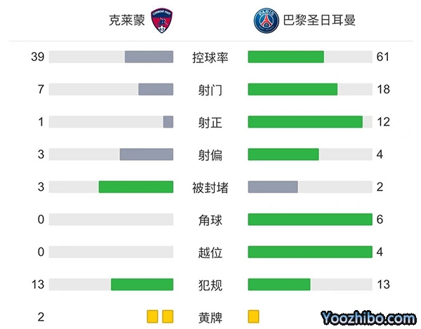 全场比赛结束,巴黎圣日耳曼客场5-0大胜克莱蒙。