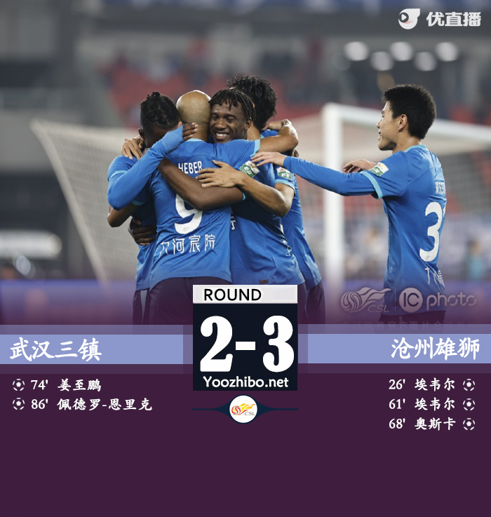 优直播讯:北京时间4月4日中超 联赛 第4轮,武汉三镇主场对阵沧州雄狮。上半场所罗门送助攻,埃韦尔头球破门。下半场埃韦尔半场得球吊射,刘殿座禁区外手球拦截遭直红罚下,之后埃韦尔任意球折射破门,随后奥斯卡爆射破门继续扩大领先优势,之后的比赛姜志鹏禁区外折射破门扳回一球,比赛临近补时恩里克造点后主罚命中再扳一球。最终沧州3-2战胜十人三镇。