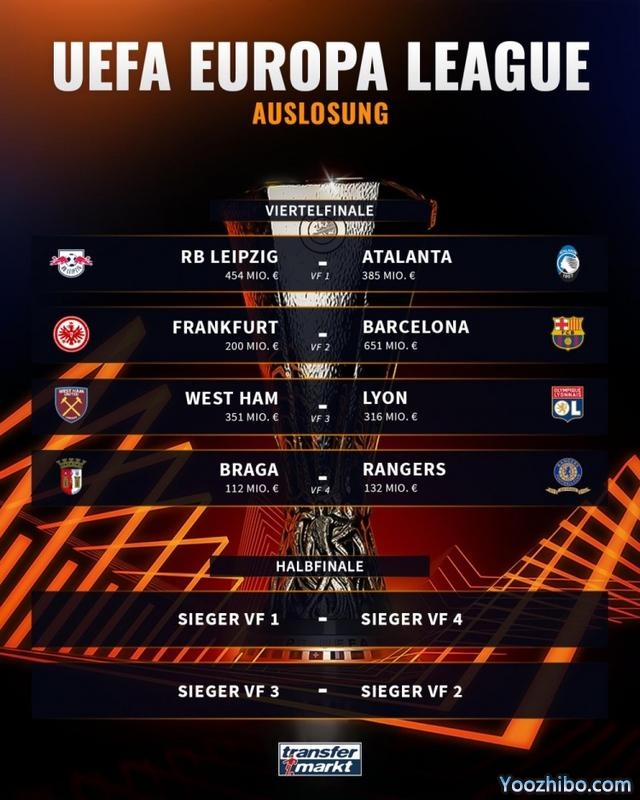 优直播讯 北京时间3月18日,欧联1/4决赛对阵出炉。巴萨处于下半区,遭遇法兰克福,若晋级可能会遇上西汉姆联。