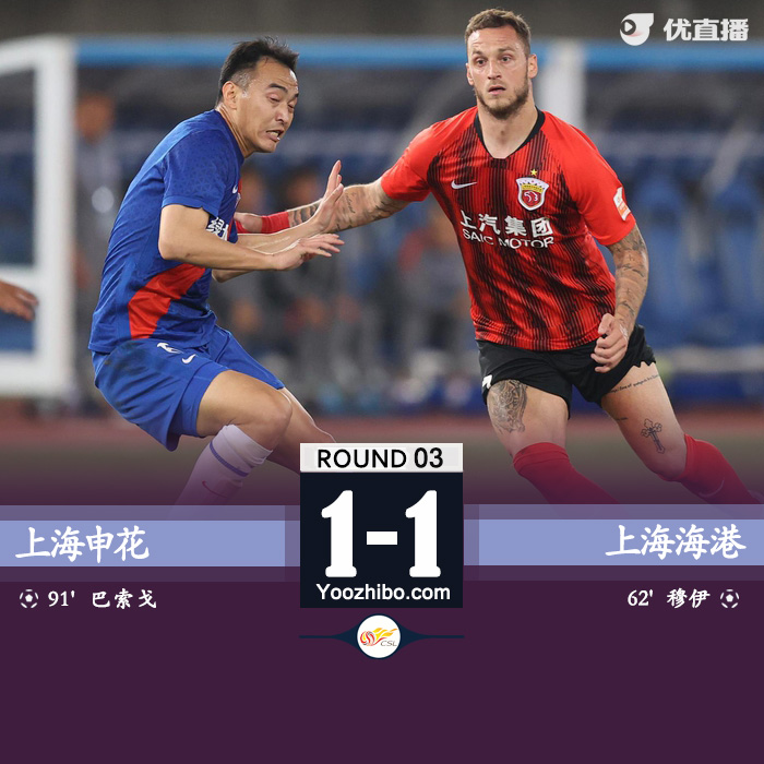 优直播5月5日讯 北京时间5月5日晚8点,2021赛季中超联赛苏州赛区第三轮展开一场焦点大战,上海申花与上海海港在苏州体育中心迎来德比大战。上半场,双方火药味十足,场上拼抢也十分激烈,但威胁进攻都不多。下半场,穆伊禁区外围精彩世界波打破僵局,随后,申花莫雷诺和巴索戈都错失单刀良机。第82分钟,买提江凶狠铲抢于汉超被直红罚下。第90分钟,申花获得点球,巴索戈一蹴而就为申花扳平比分。最终,十人作战的上海海港1-1与上海申花战平,两队本赛季继续保持不败。
