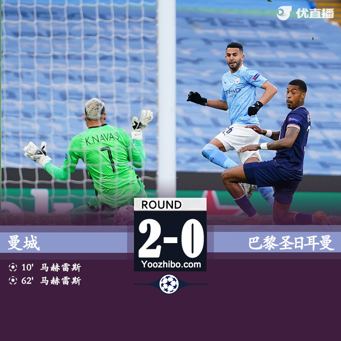 优直播讯 5月5日讯 北京时间5月5日凌晨三点,20-21赛季欧冠半决赛次回合,曼城主场迎战巴黎圣日耳曼。上半时马赫雷斯先开纪录,马尔基尼奥斯头球中横梁,迪马利亚险破门。下半时马赫雷斯完成梅开二度,迪马利亚染红,福登中柱。最终,曼城2-0战胜巴黎圣日耳曼,总比分曼城4-1巴黎晋级欧冠决赛。