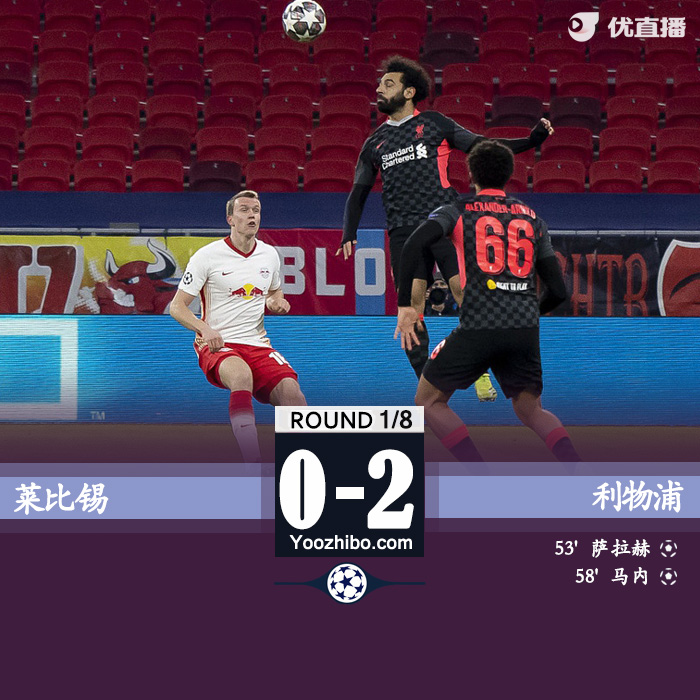 优直播2月17日讯 北京时间2月17日凌晨4点,20-21赛季欧冠1/8决赛首回合,莱比锡在中立场地与利物浦展开交锋。上半时双方没有进球,奥尔默头球中柱,菲尔米诺进球因球先出底线被吹无效,马内头球、罗伯逊吊射险破门。下半时莱比锡连续出现失误,萨拉赫和马内5分钟内分别单刀破门,安吉利诺、黄喜灿失良机。最终,莱比锡0-2利物浦,利物浦获得晋级先机。