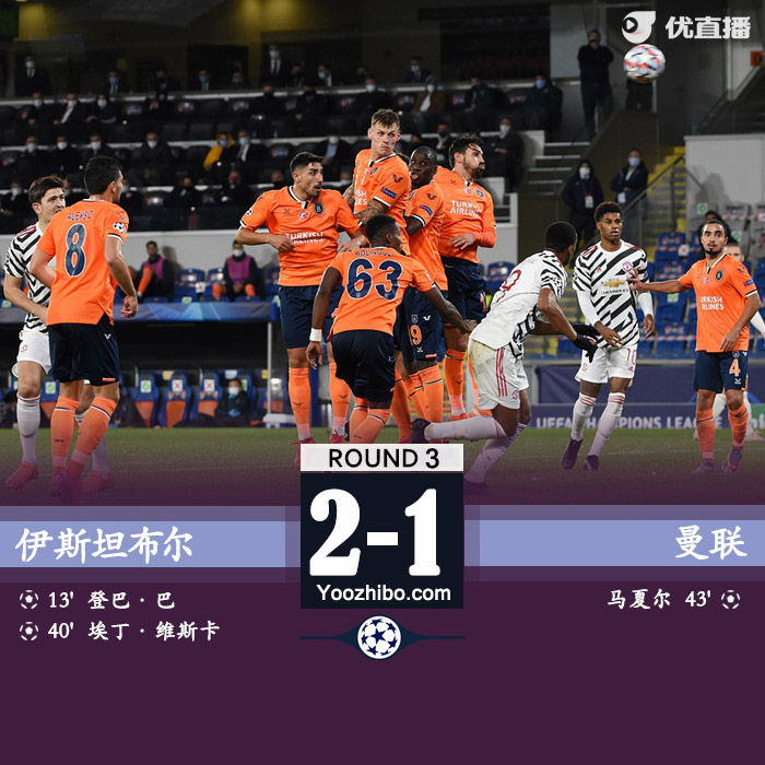 优直播讯:北京时间11月5日01:55(土耳其当地时间4日20:55),2020/21赛季欧冠H组第三比赛日一场焦点战展开争夺,曼联客场1比2不敌伊斯坦布尔,登巴巴和维斯卡进球,马夏尔扳回一城。曼联下半场围攻未能打破僵局,红魔小组连胜被终结。