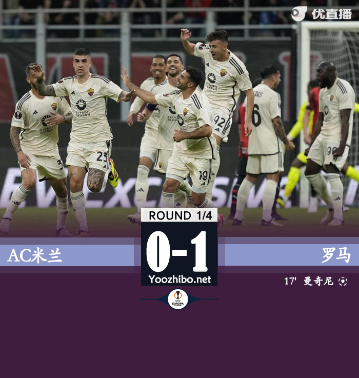 优直播讯:北京时间4月12日欧联1/4决赛首回合,米兰主场对阵罗马。上半场,赖因德斯两次打门均被扑,沙拉维推射变线被迈尼昂精彩扑救,迪巴拉角球助攻曼奇尼头球破门,吉鲁两次头球攻门均被卢卡库解围;下半场,赖因德斯再度两次射门依旧被扑,阿德利弧线球直奔球门被解围,吉鲁近距离打门中楣错失绝平机会。最终罗马客场1-0击败米兰,一周后双方将交换主客场再战。