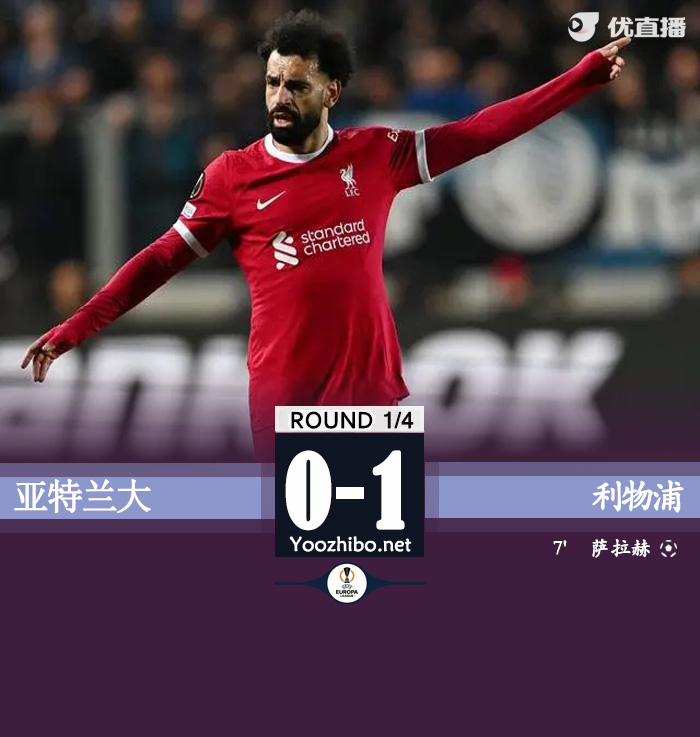 优直播讯:北京时间4月19日欧足联欧洲联赛 1/4决赛次回合,亚特兰大主场对阵利物浦。上半场,阿诺德造点,萨拉赫点射命中。随后,库普梅纳斯破门,但是因为越位在先被判无效。下半场,两队均无建树。全场比赛结束,利物浦1-0战胜亚特兰大,但是总比分1-3不敌对手无缘欧联四强。