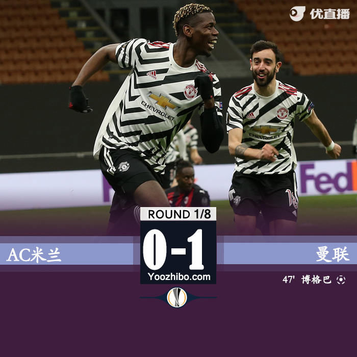 优直播3月19日讯 北京时间3月19日凌晨4点,20-21赛季欧联杯1/8决赛次回合,曼联客场挑战AC米兰。上半时双方没有进球,克鲁尼奇失良机,萨勒马科尔斯远射被扑。下半时博格巴替补建功,伊布头槌攻门被扑出。最终,AC米兰0-1曼联,总比分曼联2-1米兰晋级欧联杯八强。