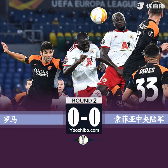 全场战罢,最终,罗马0-0索菲亚中央陆军!