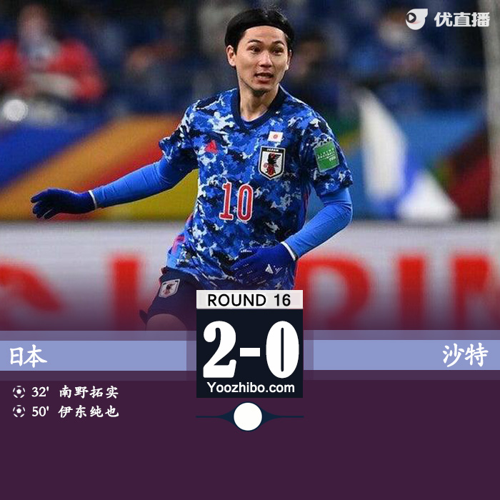 优直播2月1日讯 北京时间2月1日晚上18:14,12强赛B组第8轮焦点战,日本对阵沙特。上半场,阿马勒基伤退,伊东纯也助南野拓实破门。半场战罢,日本暂1-0沙特。下半场,伊东纯也世界波。全场结束,日本2-0沙特。