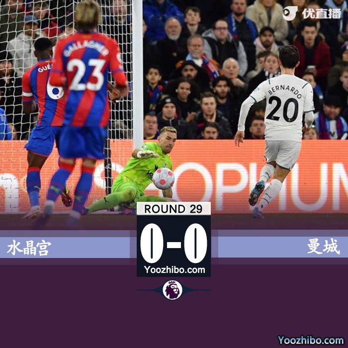 优直播3月15日讯 北京时间3月15日凌晨4点整,2021-22赛季英超第29轮在塞尔赫斯特公园球场展开角逐,曼城客场挑战水晶宫。上半场B席失良机,坎塞洛远射中柱,下半场德布劳内中柱。最终曼城客场0-0战平水晶宫,蓝月亮联赛两连胜遭终结。积分榜方面,曼城多赛一场积70分,领先利物浦4分位居榜首,水晶宫积34分仍居第11。