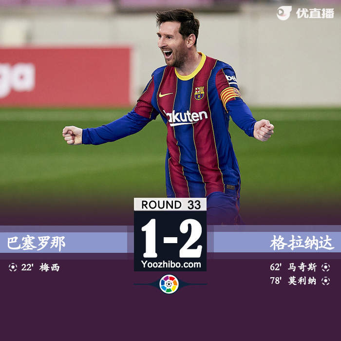优直播讯 4月30日讯 北京时间4月30日1点,西甲第33轮巴塞罗那主场对阵格拉纳达。上半场,梅西帮助巴塞罗那取得领先,但他随后错失一记单刀,索尔达多也有一次半单刀机会未能把握住。下半场,马奇斯为格拉纳达扳平比分,科曼抱怨裁判被红牌罚下,莫利纳替补建功反超比分,全场比赛结束,巴塞罗那1-2格拉纳达。这场比赛过后,巴塞罗那仍旧以71分排在联赛第三。