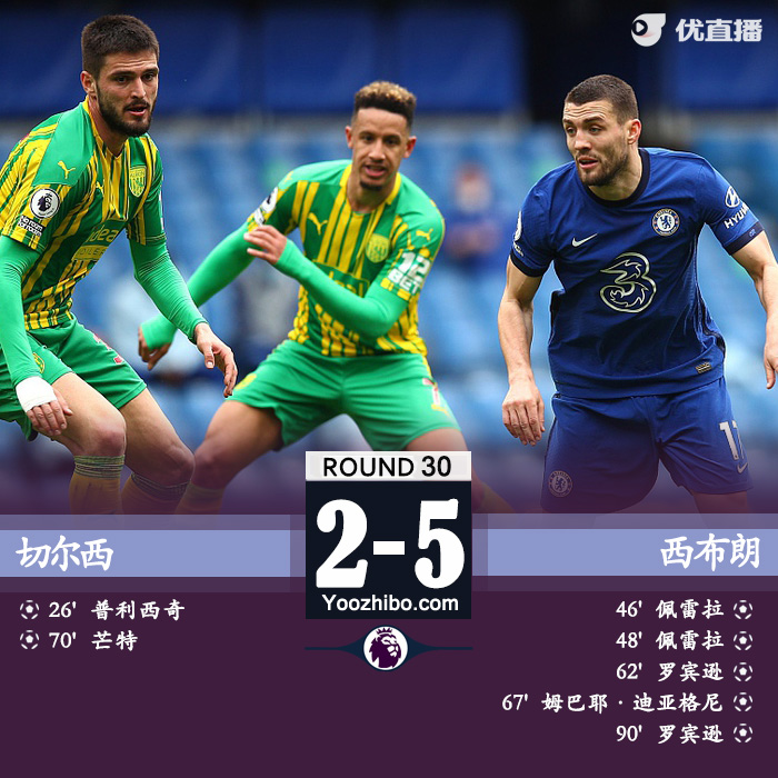优直播4月3日讯 北京时间4月3日晚19:30,英超第30轮比赛打响,切尔西坐镇斯坦福球场迎战西布朗。上半场,普利西奇首开记录,蒂亚戈-席尔瓦两黄变一红被罚下,半场结束前佩雷拉梅开二度反超比分;下半场,罗宾逊梅开二度、迪亚涅破门,芒特扳回一城。最终,十人切尔西主场2-5爆冷惨败西布朗。多赛一场的情况下积51分排在第4,仅领先身后的西汉姆2分。