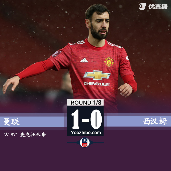 优直播2月10日讯 北京时间2月10日凌晨3点30分,2020-21赛季英格兰足总杯第5轮在老特拉福德球场展开角逐,曼联坐镇主场迎战西汉姆联。上半场林德洛夫中柱,下半场拉什福德失良机,90分钟内双方战平,加时赛拉什福德献助攻,麦克托米奈替补制胜。最终曼联主场1-0击败西汉姆联,红魔成功晋级足总杯八强。