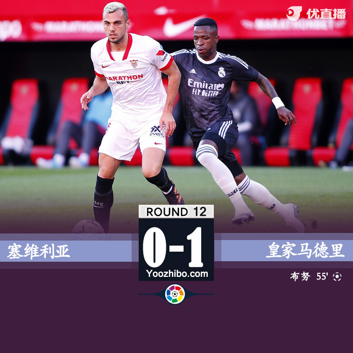 优直播讯:北京时间12月5日23:15(西班牙当地时间16:15),2020/21赛季西甲第12轮一场焦点战在皮斯胡安球场展开争夺,皇家马德里客场1比0力克塞维利亚,威尼修斯造对方门将博诺自摆乌龙。皇马近4轮首胜。
