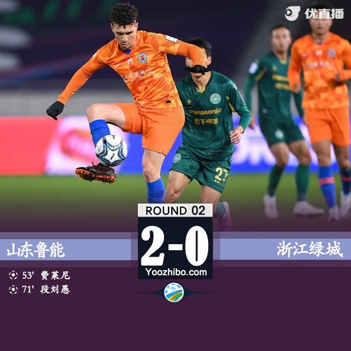 优直播讯:11月29日晚,2020年中国足协杯第二轮继续进行,山东鲁能2-0淘汰浙江绿城,成功晋级八强,接下来他们将对阵广州富力。第53分钟,蒿俊闵角球传中,格德斯头球摆渡,费莱尼头球接力破僵局。第70分钟,蒿俊闵直塞,吴兴涵边路传中,段刘愚两连击破门。