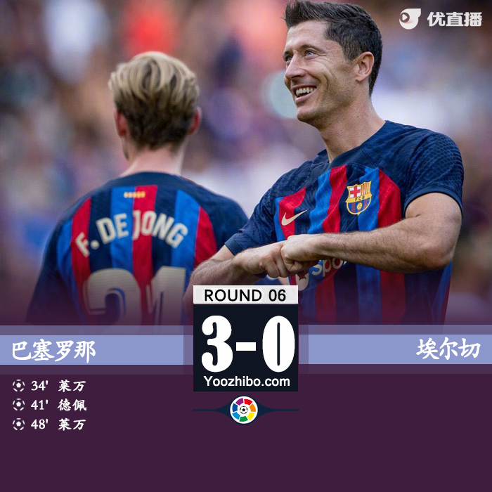 来源:优直播09-18 02:50 优直播讯:北京时间9月17日22:15,西甲第6轮继续进行,巴塞罗那坐镇主场Spotify诺坎普球场迎战埃尔切,本场主裁判为穆涅斯-鲁伊斯。上半场,莱万造贝尔杜红牌+连续五轮联赛破门,德佩“背身单打”怒射建功,阿莱士-巴尔德完成助攻双响,佩德里进球无效。下半场,莱万推射再下一城上演梅开二度。最终,巴萨主场3-0轻取十人埃尔切,迎来联赛五连胜暂登顶。