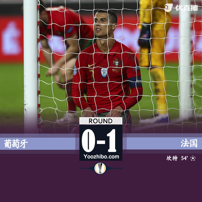 优直播讯:北京时间11月15日03:45(葡萄牙当地时间14日19:45),2020/21赛季欧国联A组第3小组一场焦点战在光明球场展开争夺,葡萄牙主场0比1不敌法国,C罗哑火,坎特打入全场唯一入球。法国以3分优势领跑小组积分榜。