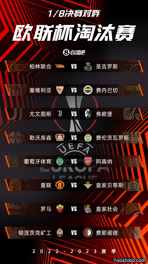 欧联杯1/8决赛对阵