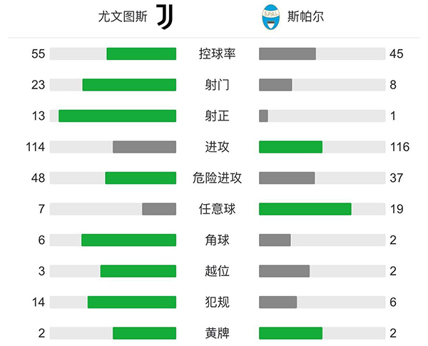 最终全场比赛结束,尤文4-0大胜斯帕尔,半决赛将对阵国米。