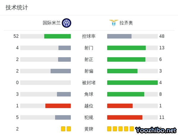 第39分钟,迪马尔科主罚角球传中被解围,阿瑙托维奇禁区前沿不停球一记凌空抽射,皮球下坠后直挂网窝死角,国际米兰1-0拉齐奥!