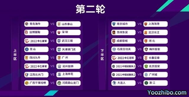 优直播讯 9月5日消息,今天上午,足协杯第二轮抽签进行。按照抽签结果,山东泰山将对阵青岛海牛。此外,上海海港、武汉三镇的对手分别是南京城市以及本赛季中乙亚军。