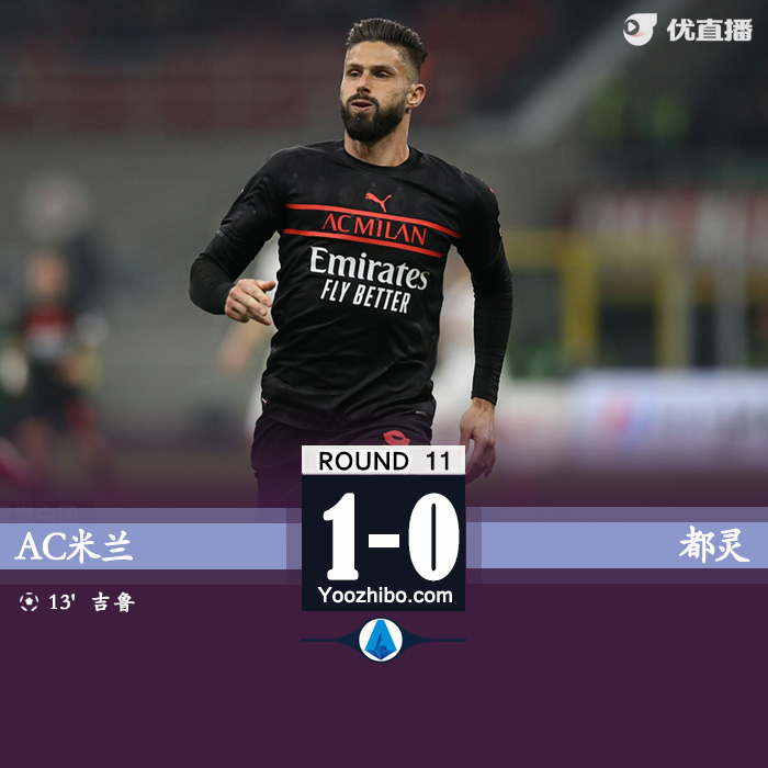 优直播10月27日讯 北京时间10月27日凌晨2:45,2021-22赛季意甲联赛第10轮,AC米兰坐镇主场迎战都灵。上半场吉鲁利用一次角球机会推射得手,下半场特奥复出,双方均再无建树,最终AC米兰主场1-0击败都灵,豪取联赛6连胜,暂时登上积分榜榜首。