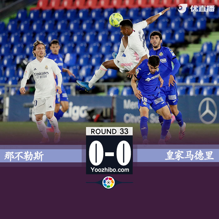 优直播4月19日讯 北京时间04月19日星期一03:00,西甲第33轮赫塔费对阵皇家马德里。上半场,马里亚诺进球越位无效,赫塔费狂打门零射正,皇马半场暂0-0赫塔费。下半场,库尔图瓦屡献神扑。最终,皇马客场0-0战平赫塔费,银河战舰4连胜终结,落后榜首马竞3分。