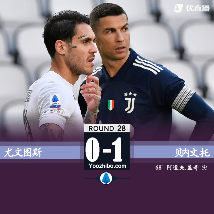 优直播3月21日讯 北京时间3月21日晚上22:00,2020-21赛季意甲第28轮,尤文图斯坐镇主场迎战贝内文托。上半场达尼洛和莫拉塔门前失良机,C罗越位位置进球。下半场阿图尔送礼贾奇破门,尤文狂攻无果。全场比赛结束,尤文图斯0-1爆冷不敌贝内文托,距离榜首国际米兰10分。