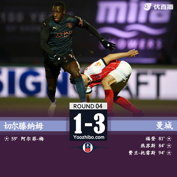 优直播1月24日讯 北京时间1月24日01:30,足总杯第4轮继续进行,曼城客场挑战英乙球队切尔滕纳姆。上半场,B-门迪的射门被托泽尔在门线上解围。下半场,阿尔菲-梅利用界外球战术打进1球,福登和热苏斯连入两球逆转比分,补时阶段费兰-托雷斯再入1球锁定胜局。最终,曼城3-1客场逆转切尔滕纳姆,顺利晋级16强。
