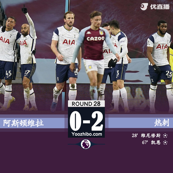 优直播3月22日讯 北京时间3月22日凌晨3点30分,2020-21赛季英超第18轮补赛在维拉公园球场展开角逐,托特纳姆热刺客场挑战阿斯顿维拉。上半场维尼修斯联赛首球,下半场雷吉隆伤退,凯恩点射扩大比分。最终热刺客场2-0战胜维拉,热刺终结各项赛事两连败,维拉连续四轮不胜。积分榜方面,热刺积48分升至第6,维拉积41分仍居第10。
