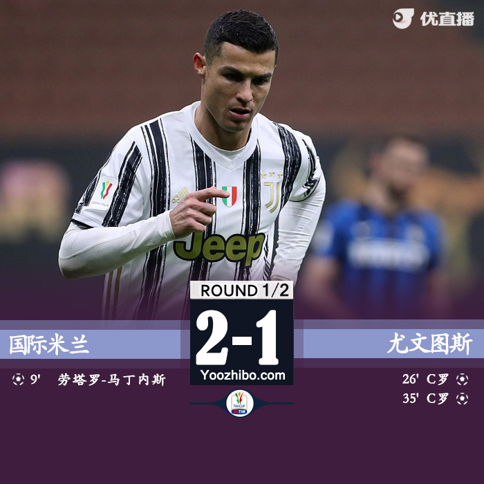 优直播2月2日讯 北京时间2月3日3:45,意大利杯半决赛首回合,国米迎战尤文。上半时劳塔罗为国米先拔头筹,夸德拉多造点,C罗斩双响。下半时德米拉尔门线救主。最终,国米1-2尤文。
