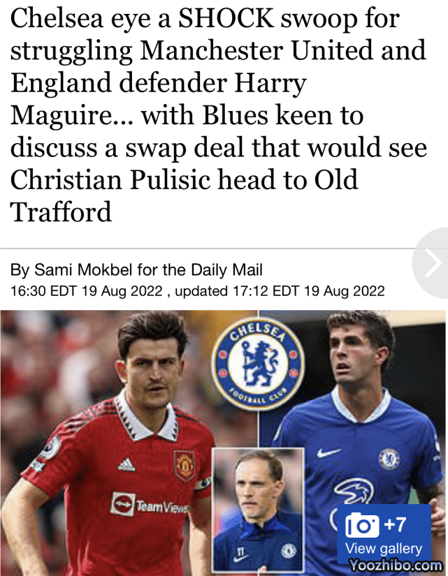 来源:优直播08-20 15:13优直播08月20日讯凌晨,来自英国知名媒体《每日邮报》的消息,英超豪门切尔西已经向曼联询问了签下英格兰中卫哈里-马奎尔的可能性。蓝军甚至愿意将马奎尔,作为曼联引进普利西奇转会的一部分,尝试让两位球员互换东家。目前马奎尔身价为3800万欧元,而身披切尔西10号的美国男足队长普利西奇,身价则是4200万欧元。