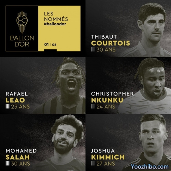 第一批:库尔图瓦(皇马)、莱奥(AC米兰)、恩昆库(莱比锡)、萨拉赫(利物浦)、基米希(拜仁)