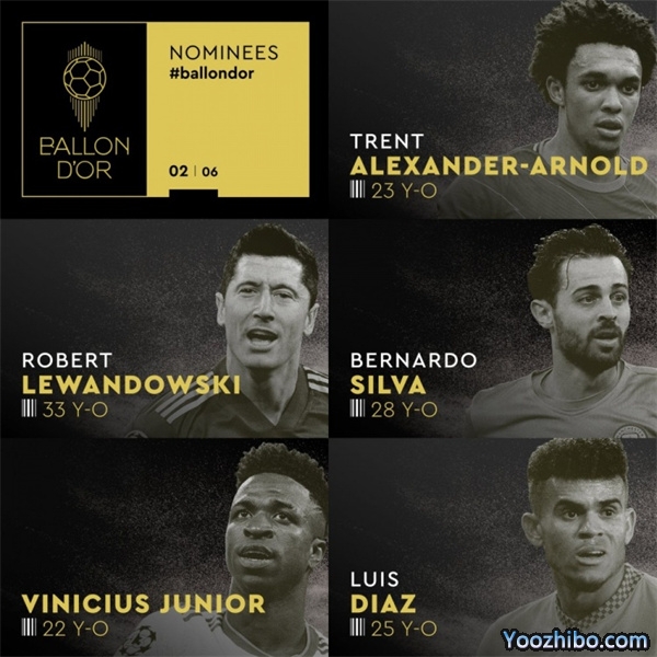 第二批:阿诺德(利物浦)、莱万(巴萨)、B席(曼城)、维尼修斯(皇马)、路易斯-迪亚斯(利物浦)
