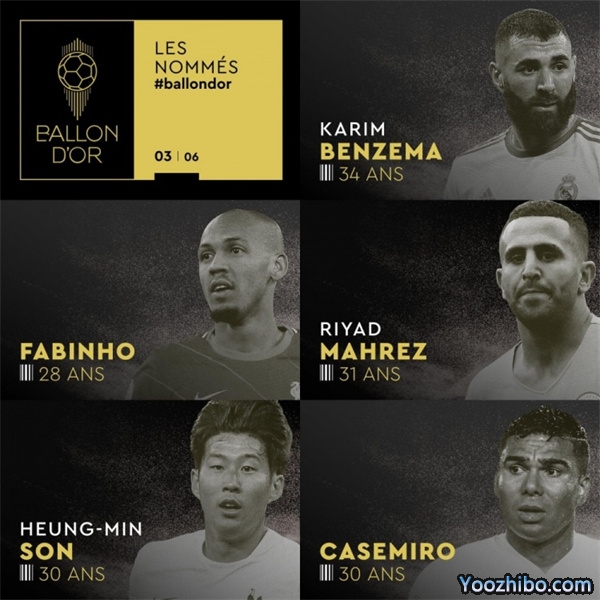 第三批:本泽马(皇马)、法比尼奥(利物浦)、马赫雷斯(曼城)、孙兴慜(热刺)、卡塞米罗(皇马)