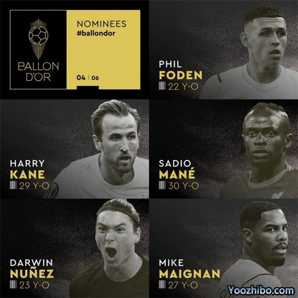 第四批:迈尼昂(AC米兰)、凯恩(热刺)、努涅斯(利物浦)、福登(曼城)、马内(拜仁)