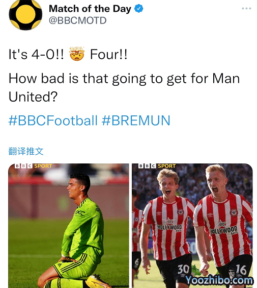 这场比赛期间,C罗的表现和动作是大家关注的焦点,当上半场曼联0-4落后的阶段,C罗跪地无奈,与布伦特福德球员们疯狂庆祝形成了鲜明的对比,包括外媒和球迷纷纷报道,这张对比的图片也火了。很显然,C罗和他所在的曼联是绝望的一方,而布伦特福德的球员们在庆祝进球,同时提前庆祝队史第一次击败底蕴豪门曼联,他们爆出了大冷门,取得胜利。