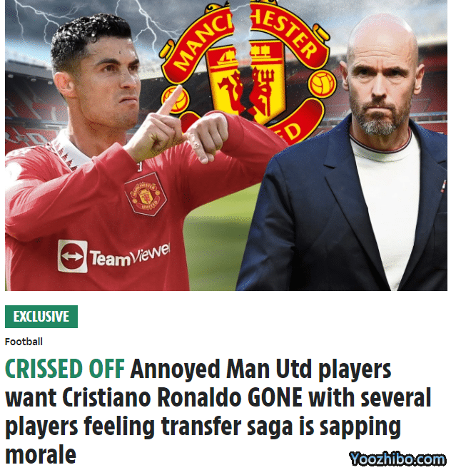 优直播08月10日讯 据《太阳报》报道,部分曼联球员对于C罗越来越恼火,在俱乐部和C罗僵持的情况下,球员们更希望C罗直接离队。