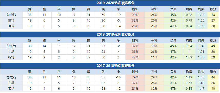 水晶宫近年成绩: