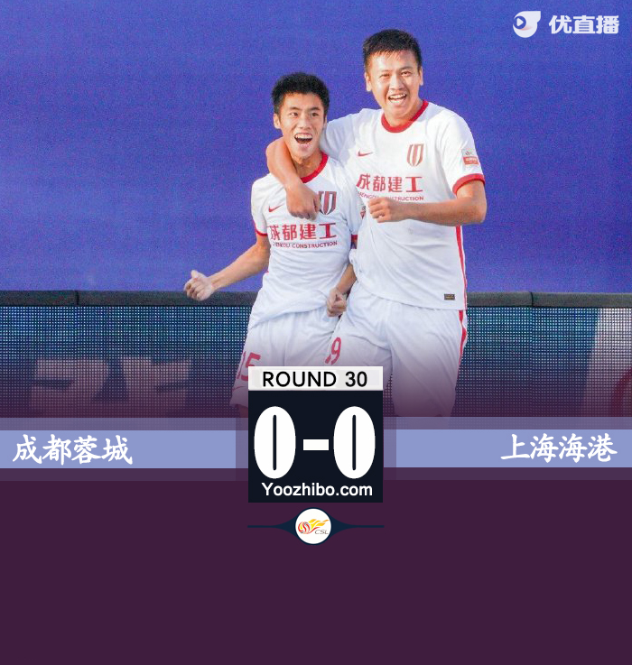 优直播12月10日讯 北京时间12月10日15:00,中超联赛第30轮成都蓉城迎战上海海港的比赛,上半场恩迪亚耶错失单刀,双方均无建树,下半场蒋光太完成门线解围,甘超世界波被吹无效,最终,成都蓉城0-0上海海港。