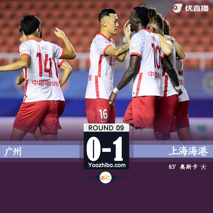 优直播7月8日讯 北京时间7月8日晚上19:30,中超联赛第9轮,上海海港对阵广州。上半场,恩迪亚耶中框,保利尼奥错失良机,郑圣雄中楣还以颜色。半场战罢,上海海港暂0-0广州。下半场,艾菲尔丁送点,奥斯卡操刀命中。全场结束,上海海港1-0广州。