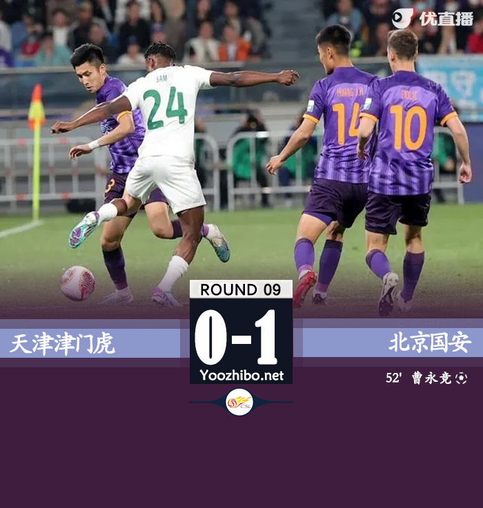 优直播讯:北京时间4月30日19:35,中超联赛第9轮,天津津门虎主场迎战北京国安。上半场张源蹬踏谢维军脚踝,被红牌罚下,两队暂0-0战平;下半场阿德本罗助攻曹永竞破门,最终十人北京国安1-0天津津门虎,迎来三连胜,暂时升至积分表第3位,天津津门虎则遭遇三连败。