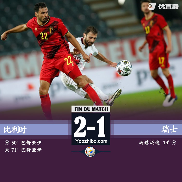 优直播讯:北京时间11月12日03:45(荷兰当地时间11日20:45),一场国际热身赛在登-德雷夫球场展开争夺,比利时主场2比1力克瑞士,阿德米尔率先破门,前切尔西中锋巴舒亚伊梅开二度逆转。
